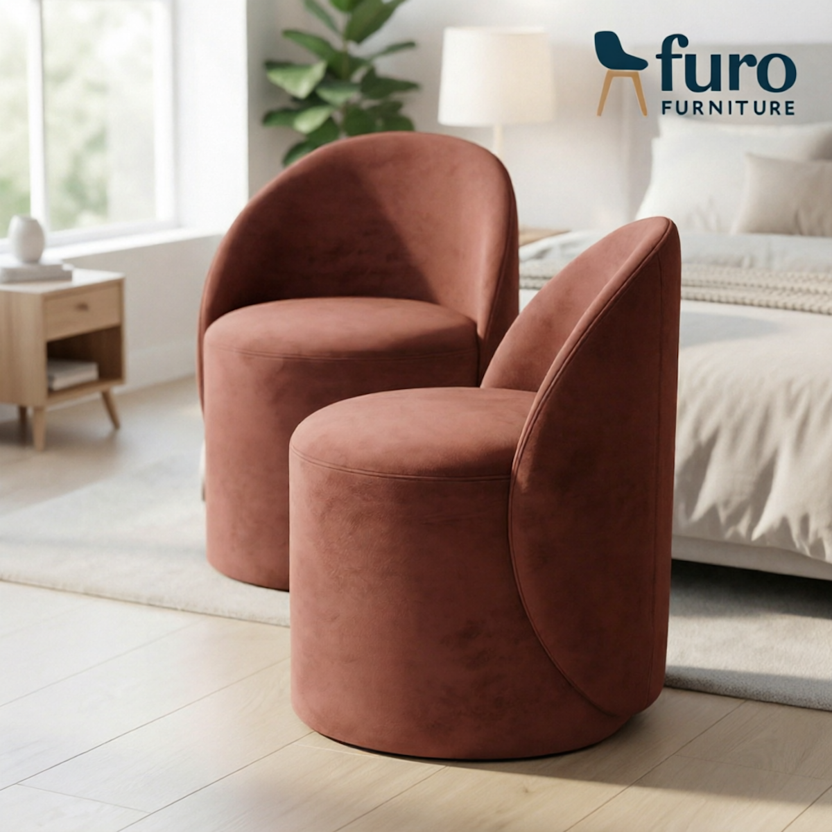 Add a bold statement of luxury to your space with this premium barrel accent sofa chair from Furo Furniture. Featuring plush velvet upholstery, a smooth curved backrest, and a compact modern design, this chair delivers exceptional comfort and elegance. Perfect for bedrooms, living rooms, lounges, or boutique spaces, it combines stylish aesthetics with durable performance.